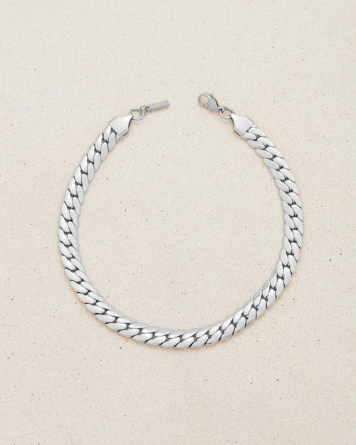 Jean is worth making plans for. In tarnish resistant silver, its flat curb chain goes well beyond classic anklets.