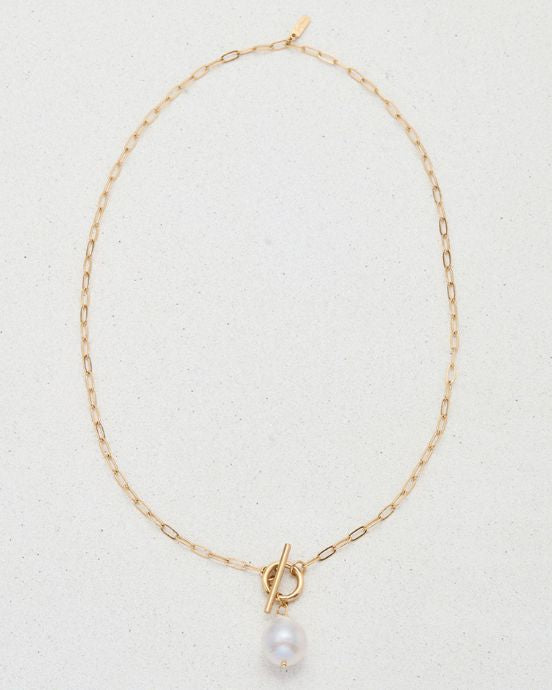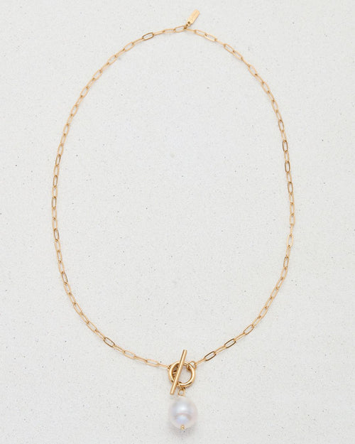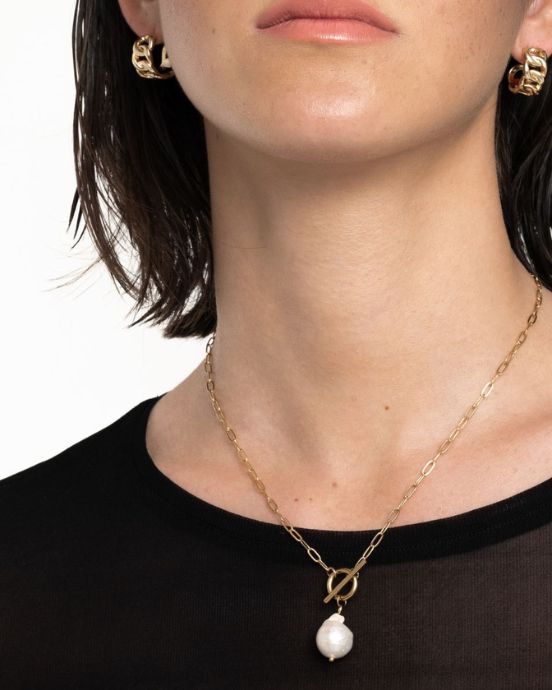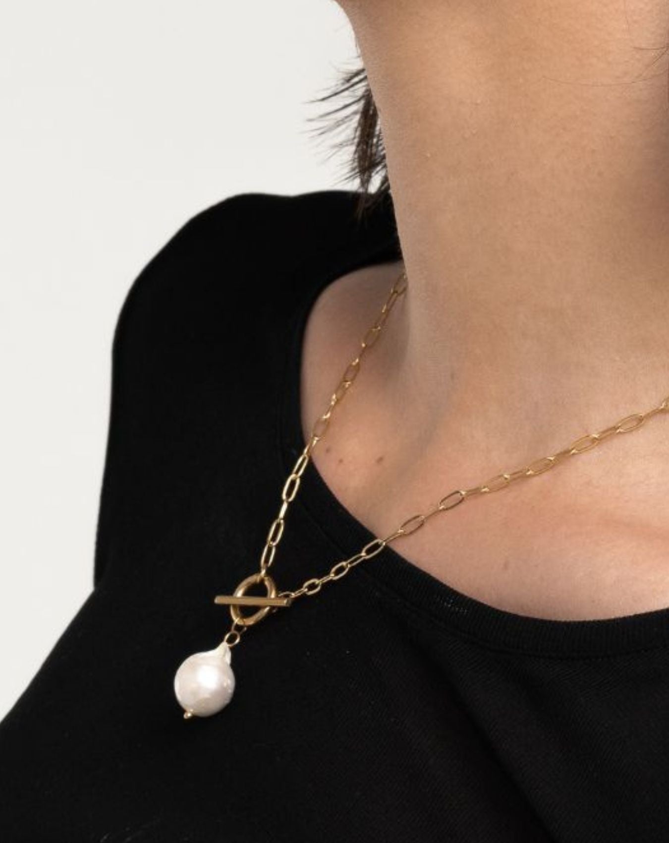 • Cable Chain Toggle with Baroque Freshwater Pearl gold.