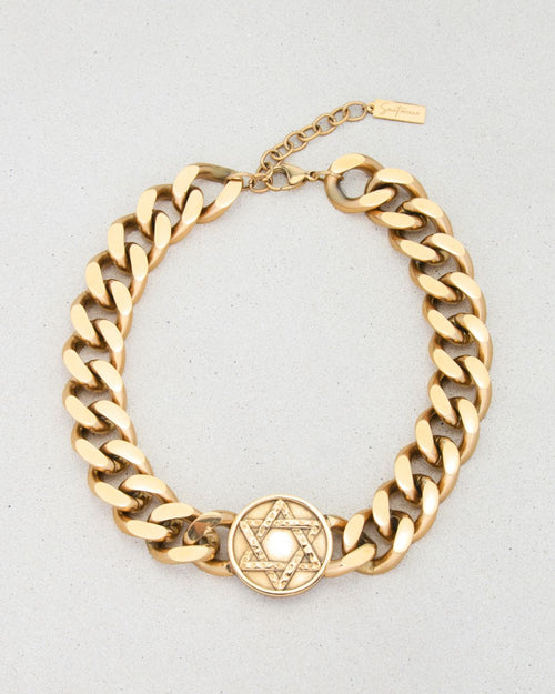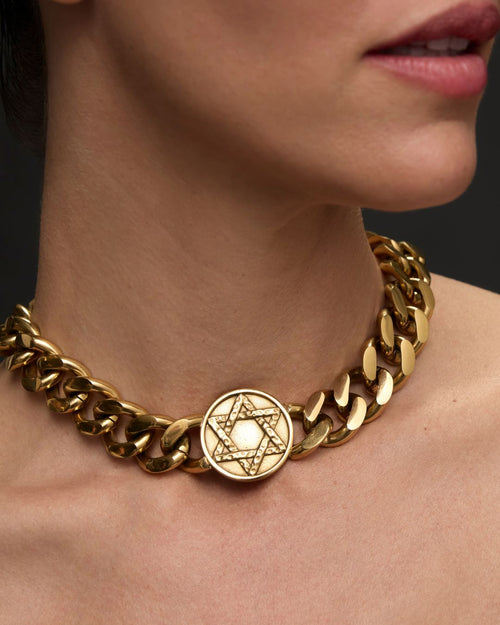 When you want more out of jewelry, reach for David, our oversized collar necklace with a faithful nod to centuries past. Carefully engraved, the star on the coin will never fail to serve as a symbol of strength.