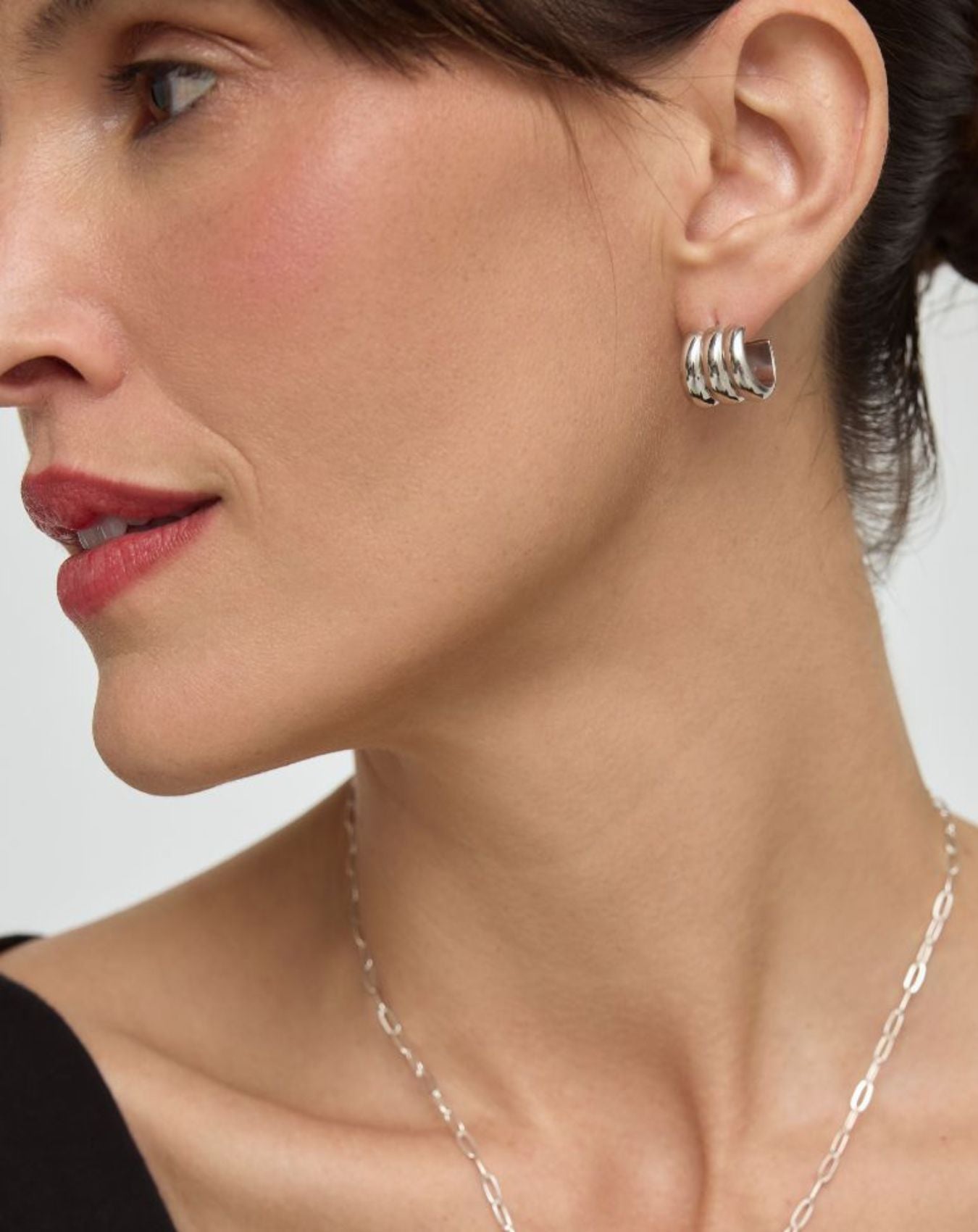 • Silver Fluted Wide Hoop Huggie Earrings.